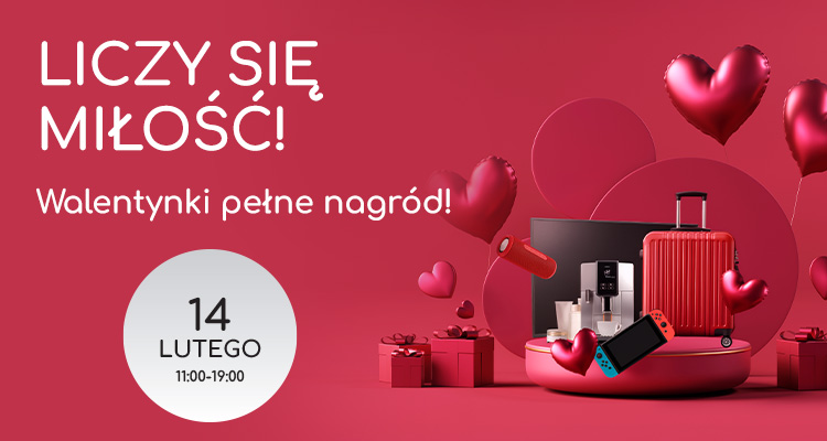 W sobotę, 14 lutego, Galeria Słowiańska zaprasza na Walentynki pełne nagród. Rejestrując zakupy na określone kwoty, dokonane w dniach 9 – 14 lutego, można wziąć udział w konkursie, w którym do wygrania są m.in.: telewizor, konsola, czy ekspres do kawy.